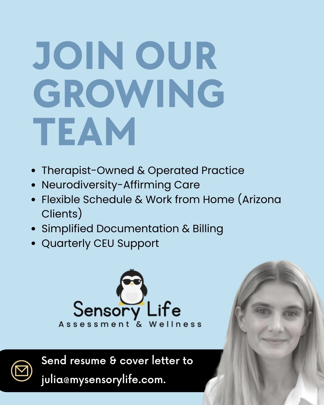 Seeking a licensed occupational therapist with a passion for providing affirming, non-judgmental, skilled OT services to neurodivergent kids & families.